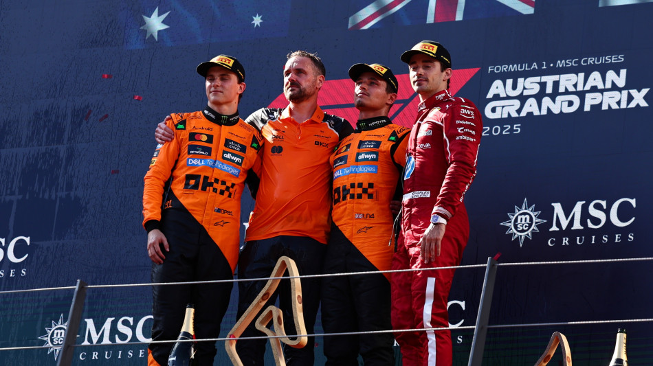 "Abbiamo spinto fino all'ultimo. È stata una gara dura, insidiosa, rovente ma abbiamo ottenuto un risultato perfetto per noi come squadra, una doppietta". Così Lando Norris dopo la vittoria nel Gp d'Austria, che ha conquistato partendo dalla pole position con la sua McLaren. "Abbiamo fatto una bella battaglia, questo è certo. È stato molto divertente, stressante, ma molto divertente. Spero che sia stata una bella gara per tutti", ha aggiunto il britannico. "Spero anche io che sia stata una bella gara, vista da fuori, perché da dentro la macchina è stata dura - ha affermato il suo compagno di squadra, Oscar Piastri -. Ho dato il massimo. Magari avrei potuto fare di meglio quando sono passato momentaneamente in testa, ho spinto un po' troppo oltre i limiti, ma è quello che siamo qui per fare: sfidarci e lottare per la vittoria".